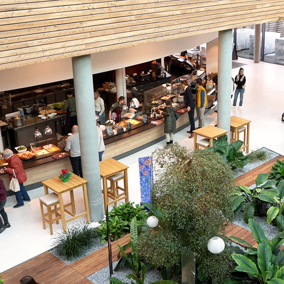 Most meals are delivered using the cook-and-chill method and reheated at the facilities at the desired time. “Our aim was to demonstrate with our own kitchen that 100 per cent organic food is also achievable in institutional catering,” says Hofer. In the dishwashing area, it was particularly important to him to reduce the workload on staff, as a kitchen of this size generates a considerable amount of wash ware items. Since then, a high-quality HOBART flight-type dishwasher has ensured efficient processes. Dishes, GN containers and other utensils can be prepared quickly and easily for the next delivery or for use in the on-site gourmet kitchen.