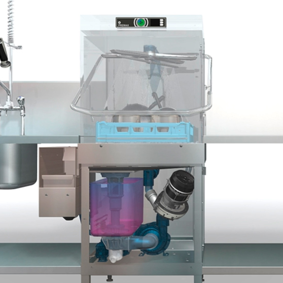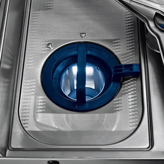 BECAUSE: All food residues are immediately pumped out of the machine through the new filter system. This saves operating costs and protects the rinsing system and the environment.