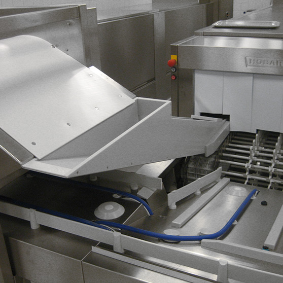 HOBART uses lowered loading areas to provide up to four working positions at the intake of a flight-type dishwasher. This considerably increases the capacity of the washing organisation.