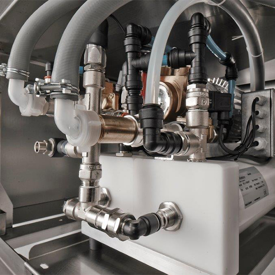 Reliable, spotless and hygienic: Continuous treatment with state-of-the-art membrane and filter technology ensures fully demineralised water - for a consistently hygienic and sparkling rinse result. Hygienic risks as a result of manual polishing are already prevented in advance.