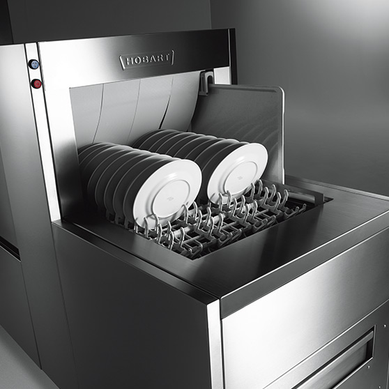 Flight-type dishwashers are intended for fast cleaning of large quantities of wash ware items. For these dishwashers, it is particularly important that the two factors, footprint and efficiency are well balanced. HOBART has a solution for this challenge that also meets all the specific requirements made in flight-type dishwashers in everyday practical use: the unique, innovative twinLINE.