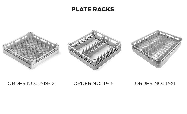| P-XL | Plate rack 600 x 500 mm, for 24 plates up to 240 mm Ø or 22 large plates (285 mm Ø), height 11 cm |