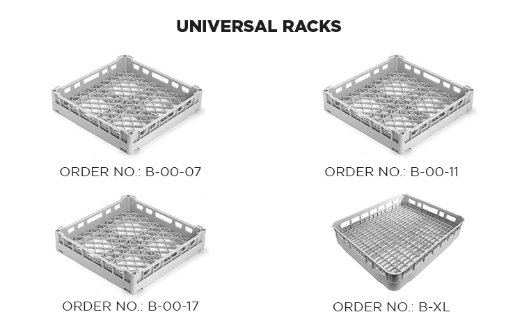 | B-XL | Universal flat rack 600 x 500 mm, with wide mesh bottom (for example for cutlery baskets for cutlery in upright position), height 11 cm |