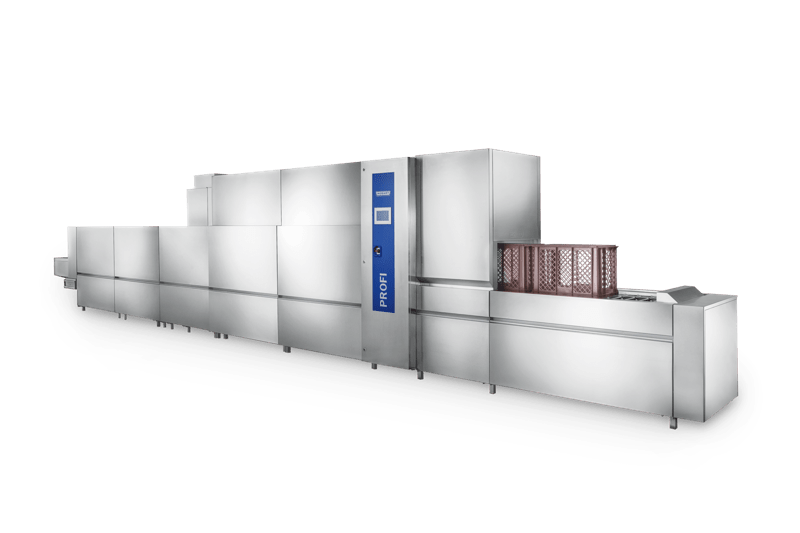 With the container and utensil wash system up to 2,000 boxes or racks can be washed per hour. The intelligent SENSO-SPACE compartment detection automatically detects gaps in the wash ware load and reduces the fresh-water supply down to the minimum.